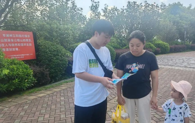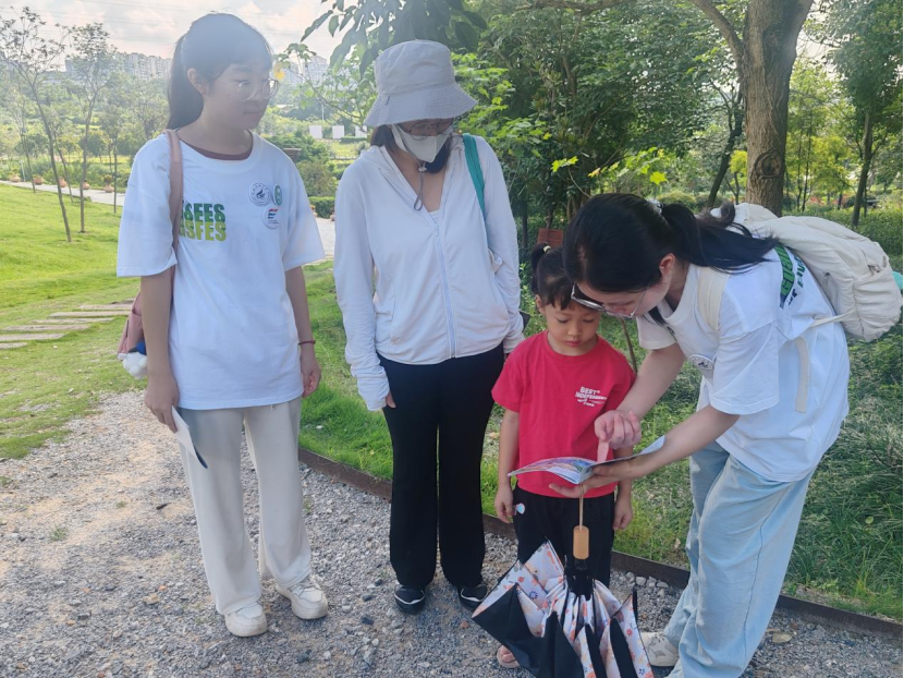 第二站,宣传团走进了南宁那考河湿地公园,并在这里开展绿色环保知识的科普宣传及湿地治理的实地调研。团队准备了图文并茂的宣传册,以小小水滴为主角,用通俗易懂的语言讲解湿地的生态功能及保护意义,让群众通过图文认识水的净化过程和湿地环境的形成原理,展示“污水如何变清水”,呼吁大家“绿色出行、垃圾分类、爱护动植物”,共同守护那考湿地,越来越多的人停下脚步倾听,主动加入环保讨论。